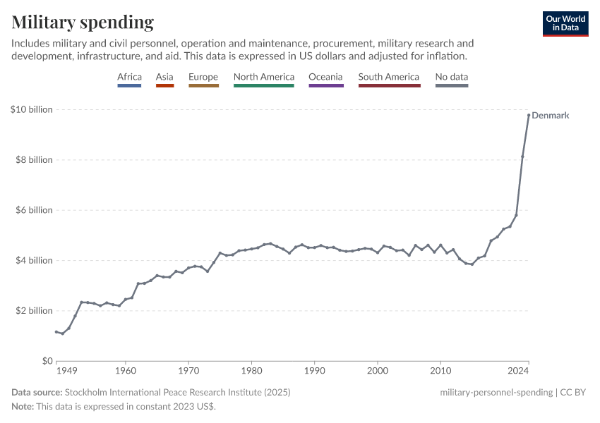 Stockholm International Peace Research Institute (2025) – with minor processing by Our World in Data. “Military spending” [dataset]. Stockholm International Peace Research Institute, “SIPRI Military Expenditure Database” [original data]. Retrieved May 29, 2025 from https://data-world-bank-pip.owid.pages.dev/grapher/military-spending-sipri