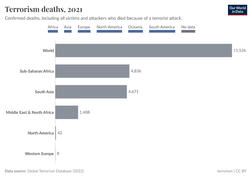 Bastian Herre, Veronika Samborska, Hannah Ritchie, and Max Roser (2023) - “Terrorism” Published online at OurWorldinData.org. Retrieved from: 'https://data-world-bank-pip.owid.pages.dev/terrorism' [Online Resource]BibTeX citation